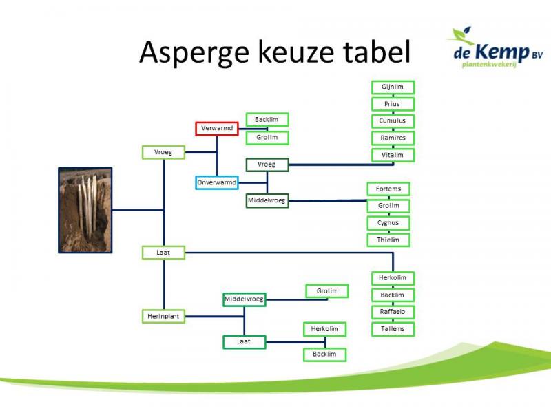 Allemaal factoren die de keuze voor een bepaald ras zullen bepalen. Hiernaast vind u onze Aspergetabel die u helpt te bepalen welk ras u het beste kunt kiezen.